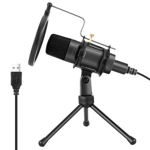Condenser Streaming Microphone USB Built In Sound Card + Microphone, Portable With 270° Adjustable Tripod, USB Connector, Black